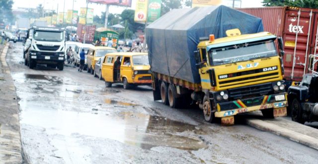A food vendor, Mrs Kaka Kolo, appealed to the Federal Government to increase funding for road repair in Apapa. Trailers are the ones spoiling the road always. The best thing is for government to give contractors more money to repair roads